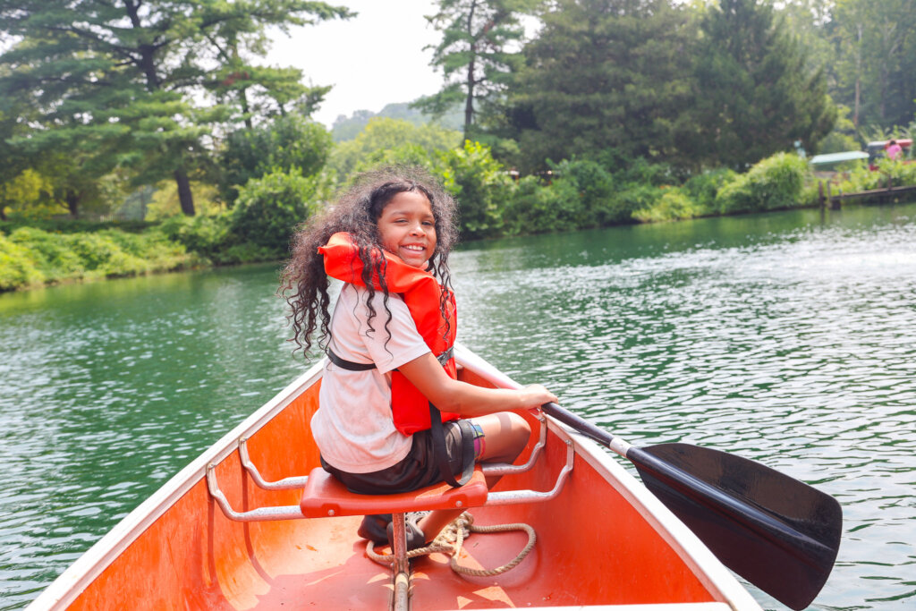 Learn paddling basics on our local waterways. Before getting onto the water, campers will learn about the parts of the canoe and paddle, proper paddle grip, posture, and different stroke techniques. On the water, instructors will teach campers how to paddle forwards, backwards, and steer in a flat water environment with hands-on practice and games.